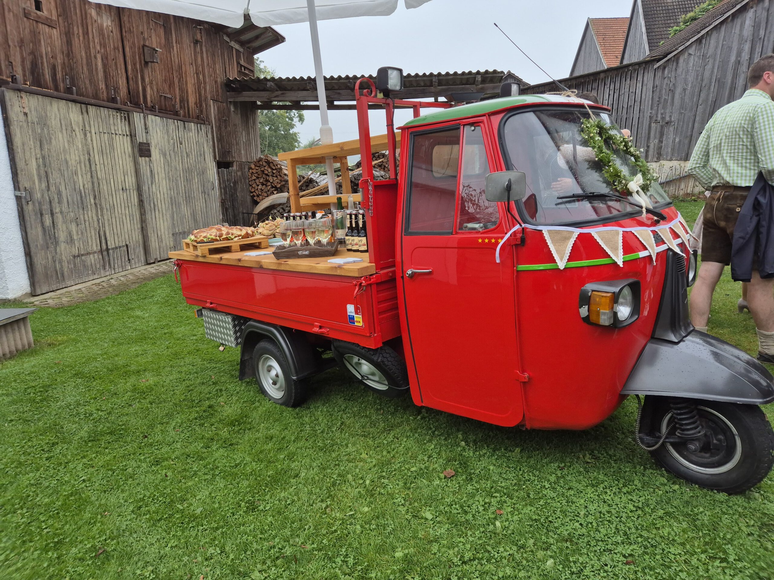 Unsere Event APE, die sich super für Polterabende, Standesamt, Hochzeiten, Geburtstage, Firmenevents uvm eignet. Ideal für Getränke, Cafebar, Speisen, Büffett oder auch einfach nur als Werbeträger. Mit unserer APE wird jedes Event zum persönlichen Highlight!